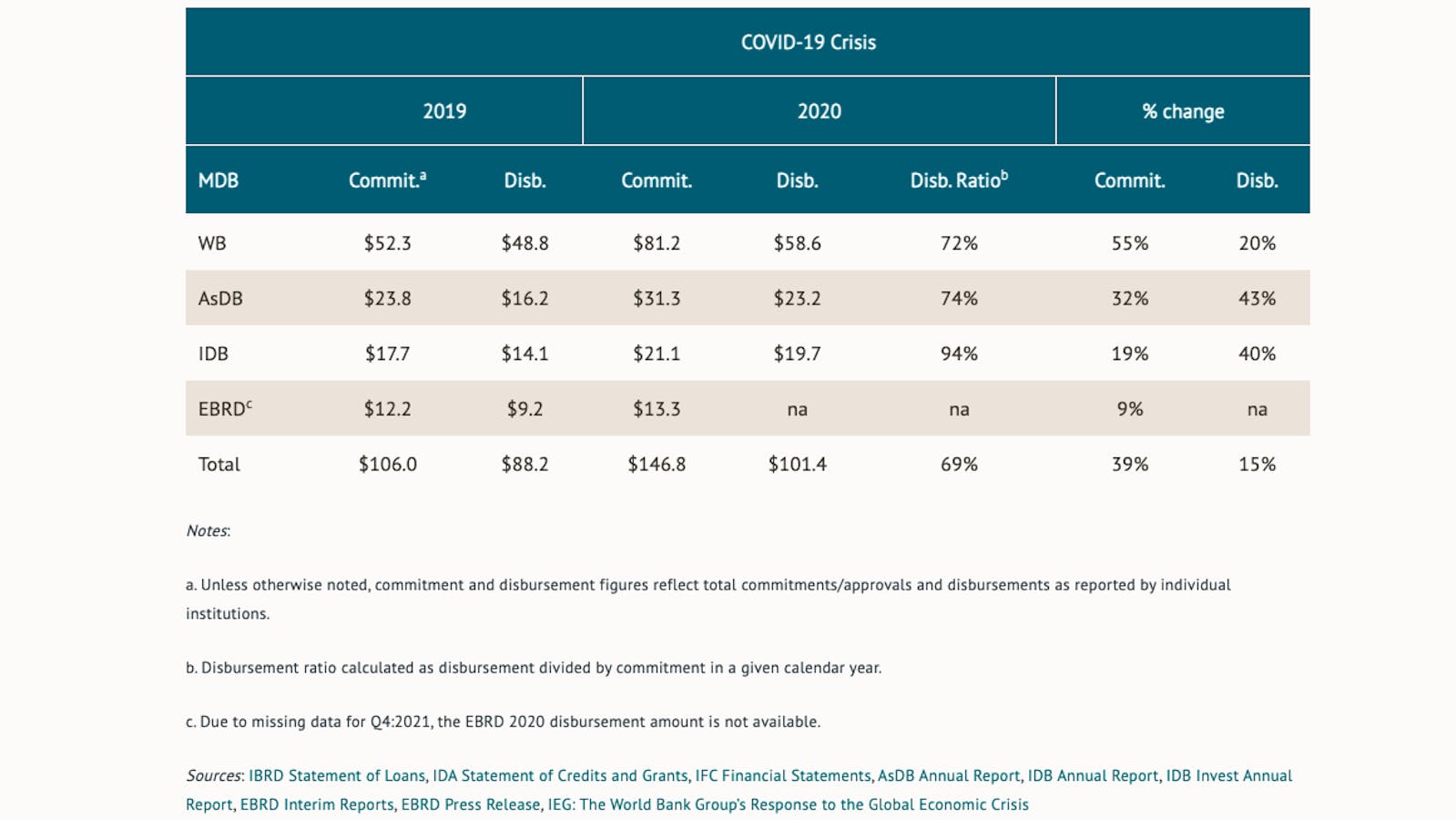 Table 1. MDB commitments and disbursements (USD billions)