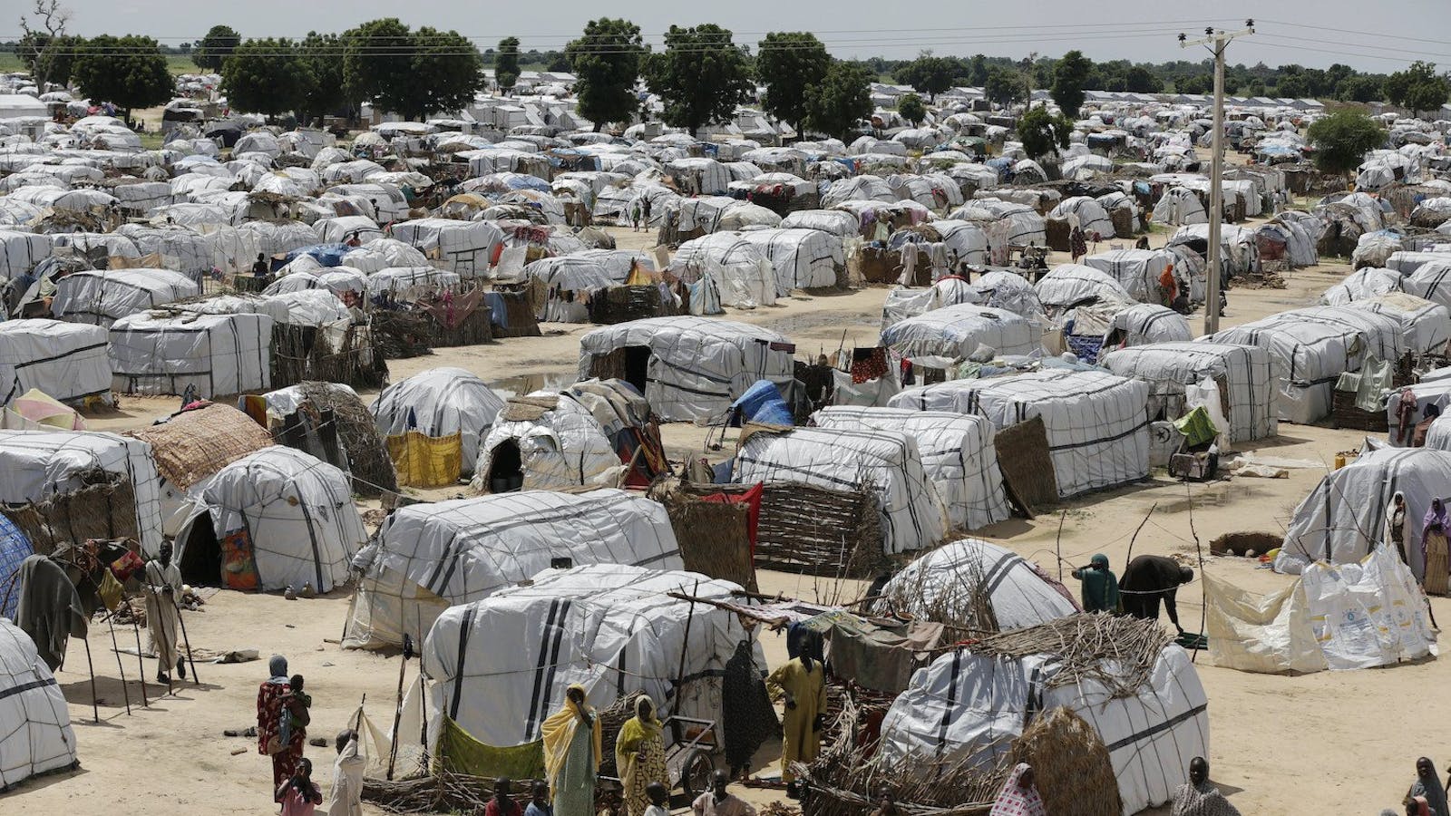 A top view of one of the biggest camp for people displaced by Islamist extremists in Maiduguri, Nigeria on Aug. 28, 2016. Droughts, flooding and a shrinking Lake Chad caused in part by climate change is fueling conflict and migration in the region and needs to better addressed, a report said Thursday, Jan. 19, 2023. Image: AP Photo/Sunday Alamba